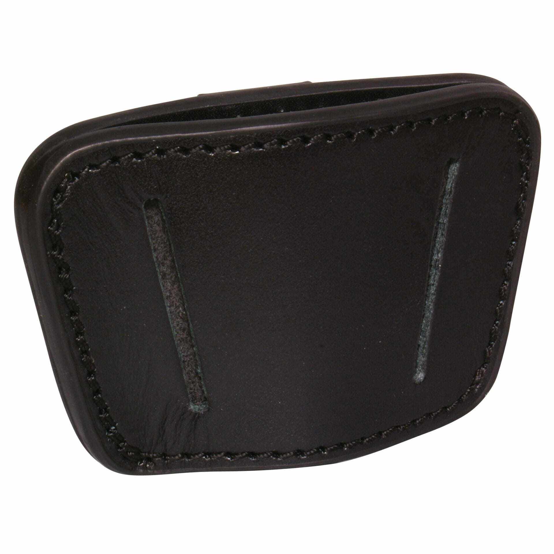 Black Ambidextrous belt slide holster in genuine high-grade leather. Fits medium to large frame autos handguns: Glock” Sig” Beretta” S&W Autos – 9mm. 45 Autos and 1911. Slots to fit up to 1-3/4 inch belt with removable clip for wearing inside or outside waistband right or left or in the small of your back. Comes with belt loops and a removable clip.